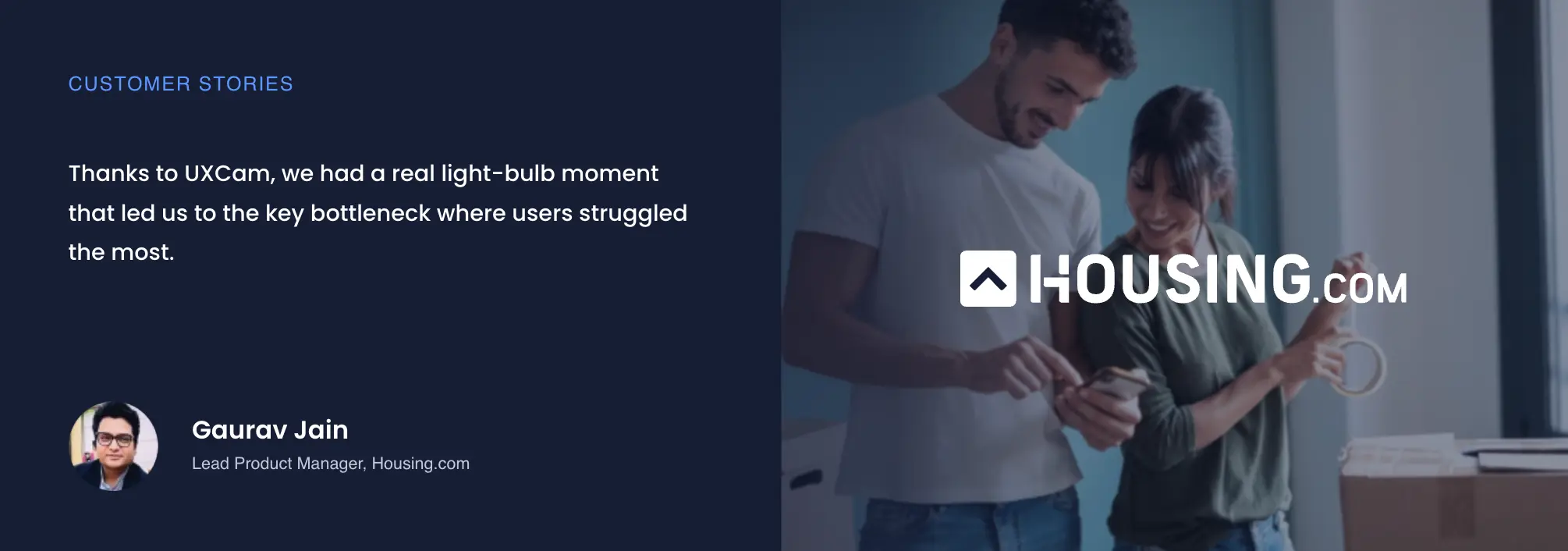 Let's illustrate this with an example from a case study of how Housing.com increased its feature adoption by 20% by redesigning its in-app search bar feature.