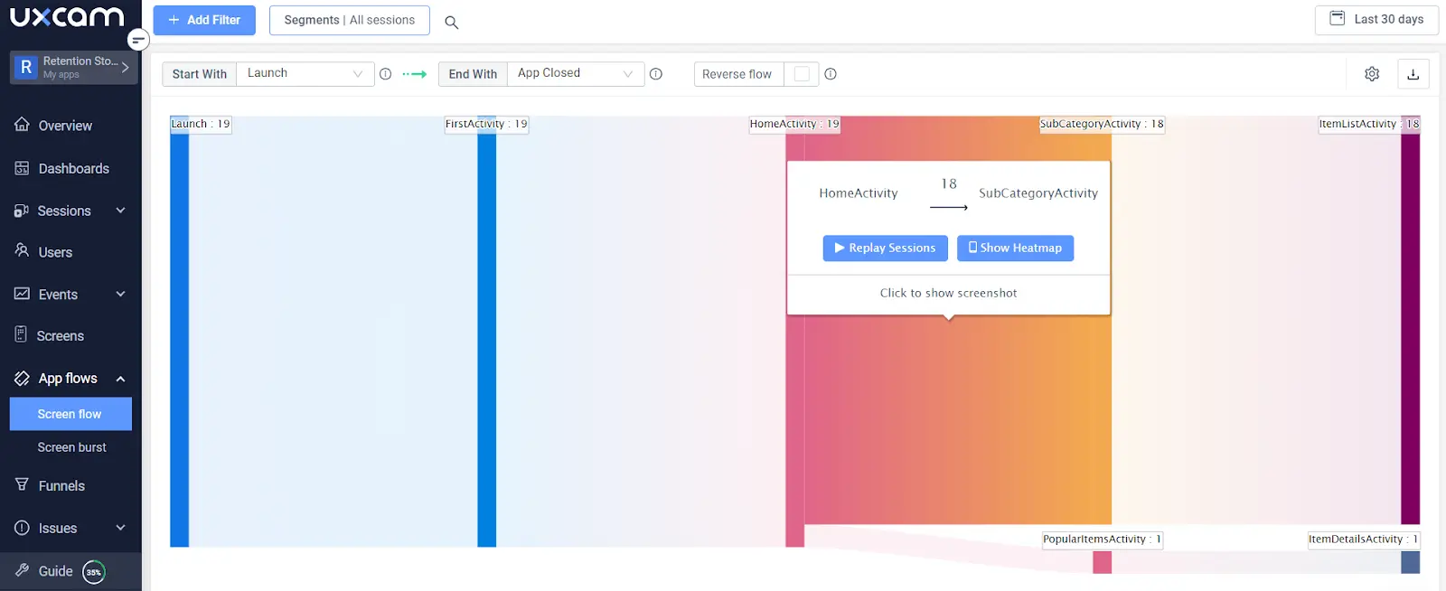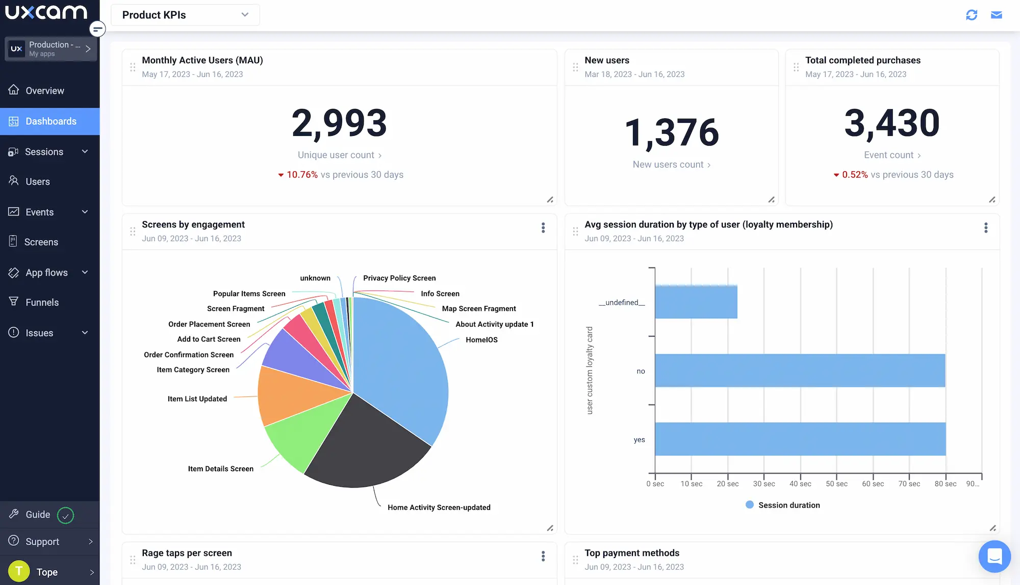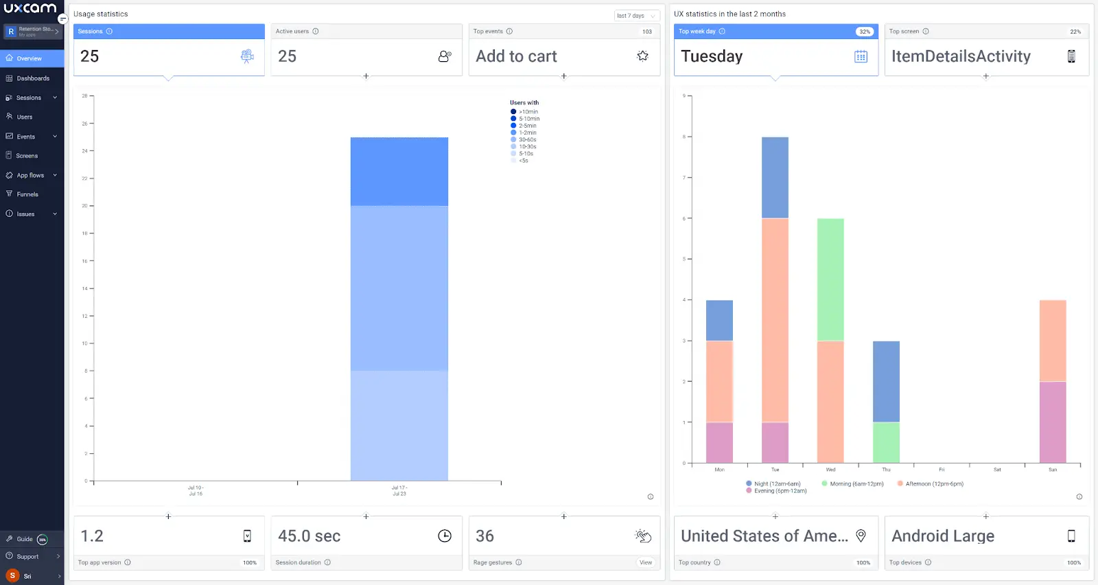 At UXCam, we arm mobile product teams with all the tools they need to empathize with users and build experiences that delight them. From session replays to issue analytics, there are tons of lenses to view the user experience.