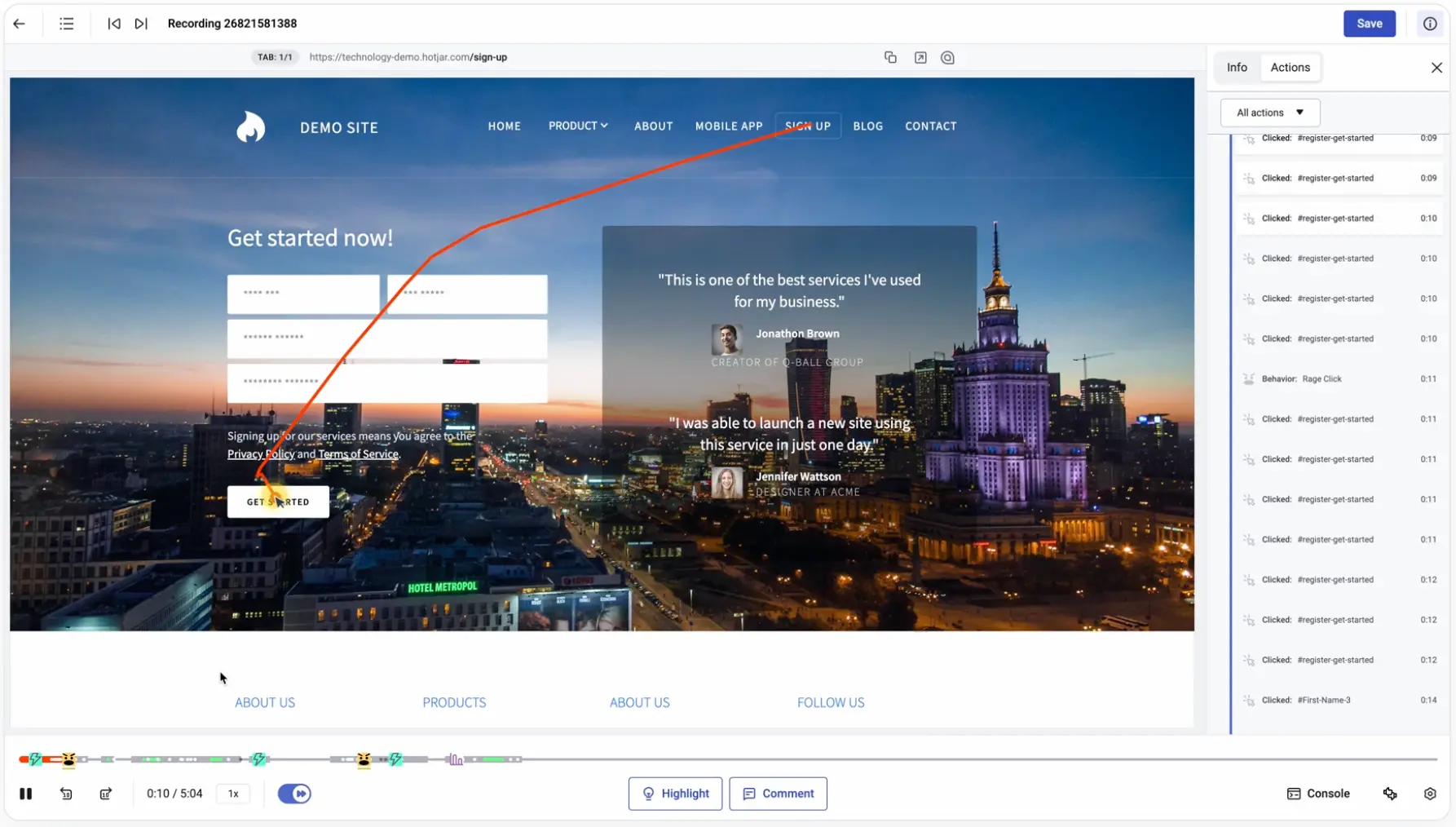 Session Replays: View an enriched replay of any session complete with mouse tracking, event logs, and frustration signals.