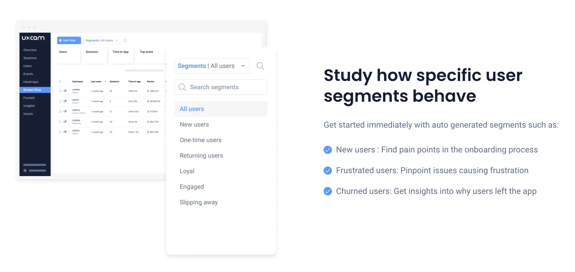 If that sounds like a pretty broad scope… it is. Answering these questions takes an arsenal of tools that range from simple survey and poll creation tools to advanced product analytics and UX research tools like UXCam, which can help you build apps around your users.