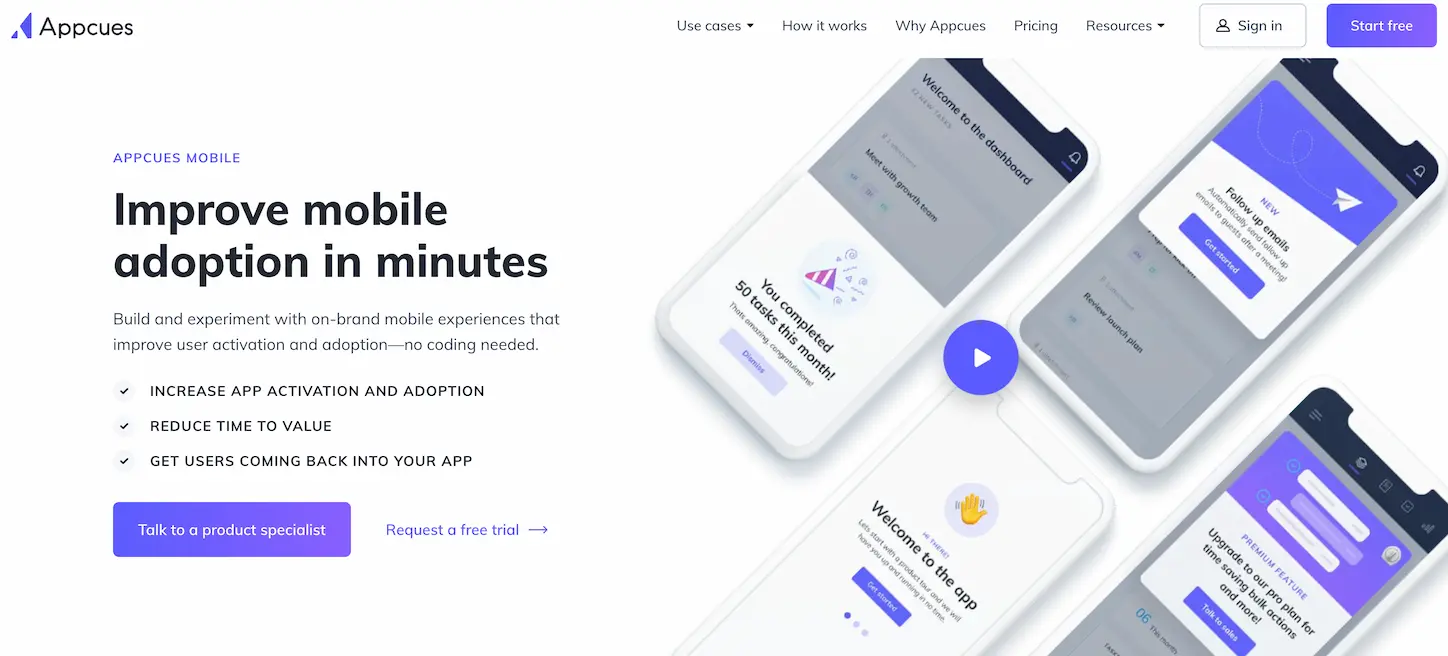 Appcues is an aptly named product that lets you create guided user flows and product tours that “cue” users to take key actions that lead to aha moments.