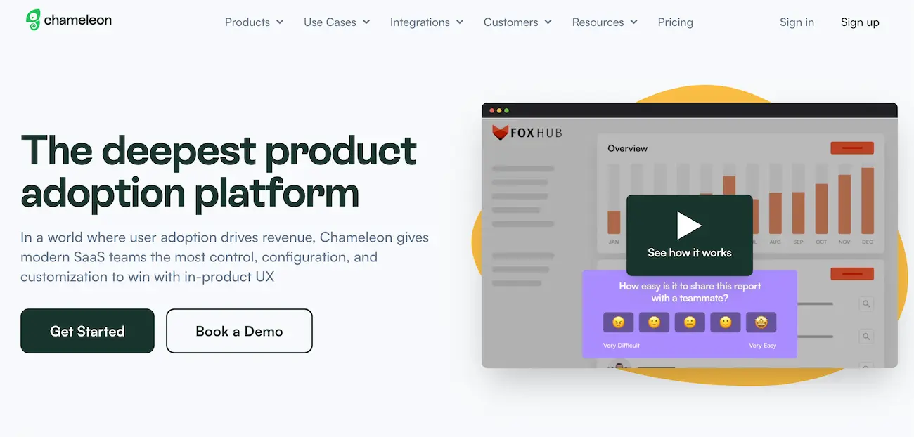 Chameleon is a comprehensive tool designed to drive user adoption and revenue in the modern SaaS landscape. It provides a suite of features designed to give teams the most control, configuration, and customization of in-product user experience.