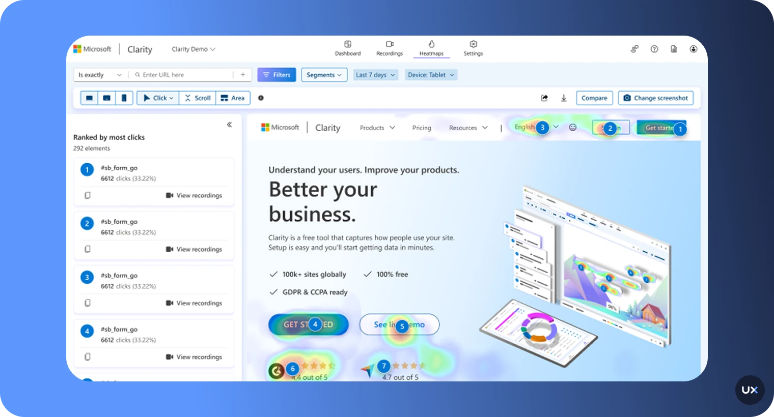 Heatmaps: Visualizes clicks and attention on web and mobile apps.