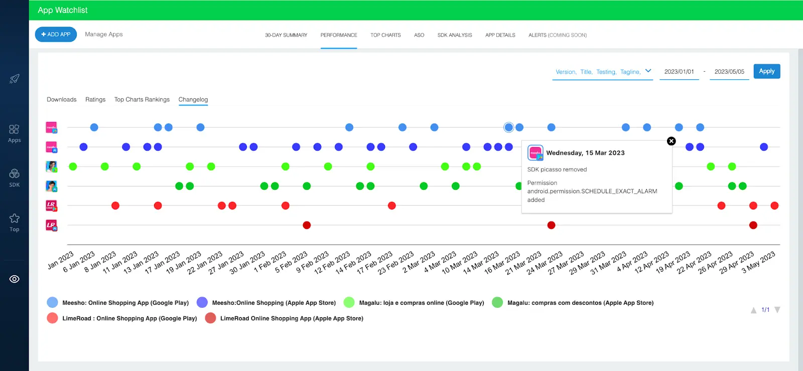 For example, if you notice that a decline in ratings coincides with a newly integrated SDK or a privacy policy revision, you can avoid making similar mistakes.
