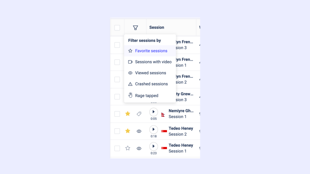 You can mark sessions with crashes as a “favorite session” so that you carry on with your investigation by identifying other sessions with similar issues.
