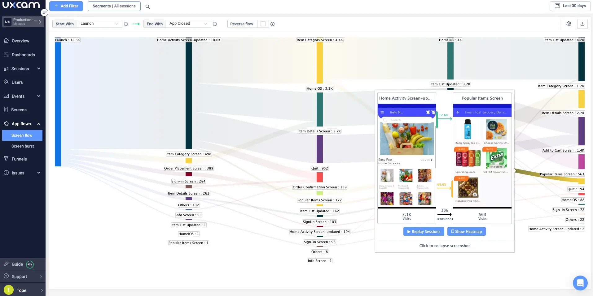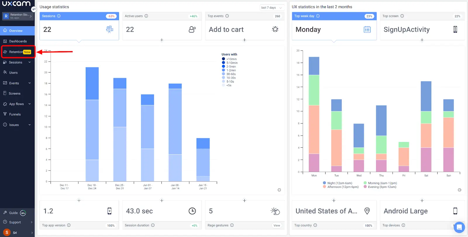 At UXCam, we arm mobile product teams with a comprehensive set of user behavior and product analytics features—session replays, heatmaps, retention reports, and more. Get started with a free trial and see first-hand how UXCam can help you improve customer retention and drive growth for your mobile app.