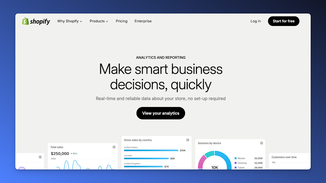 Shopify Analytics is a comprehensive suite of ecommerce analytics tools that empowers store owners to gain valuable insights into their customers and their store's performance. Built into the Shopify platform, it seamlessly integrates with your existing store data, providing a centralized hub for understanding your customers' behavior, optimizing your store for conversions, and driving business growth.