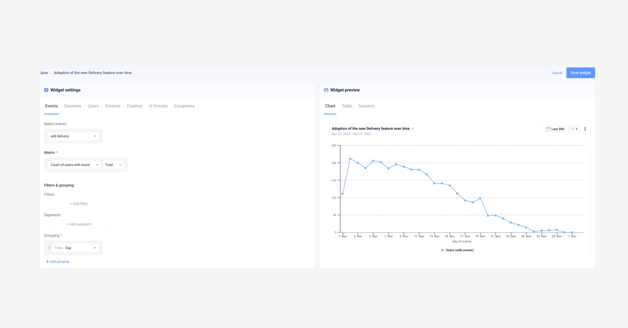 Adoption of a new delivery feature over time on UXCam (click to enlarge).