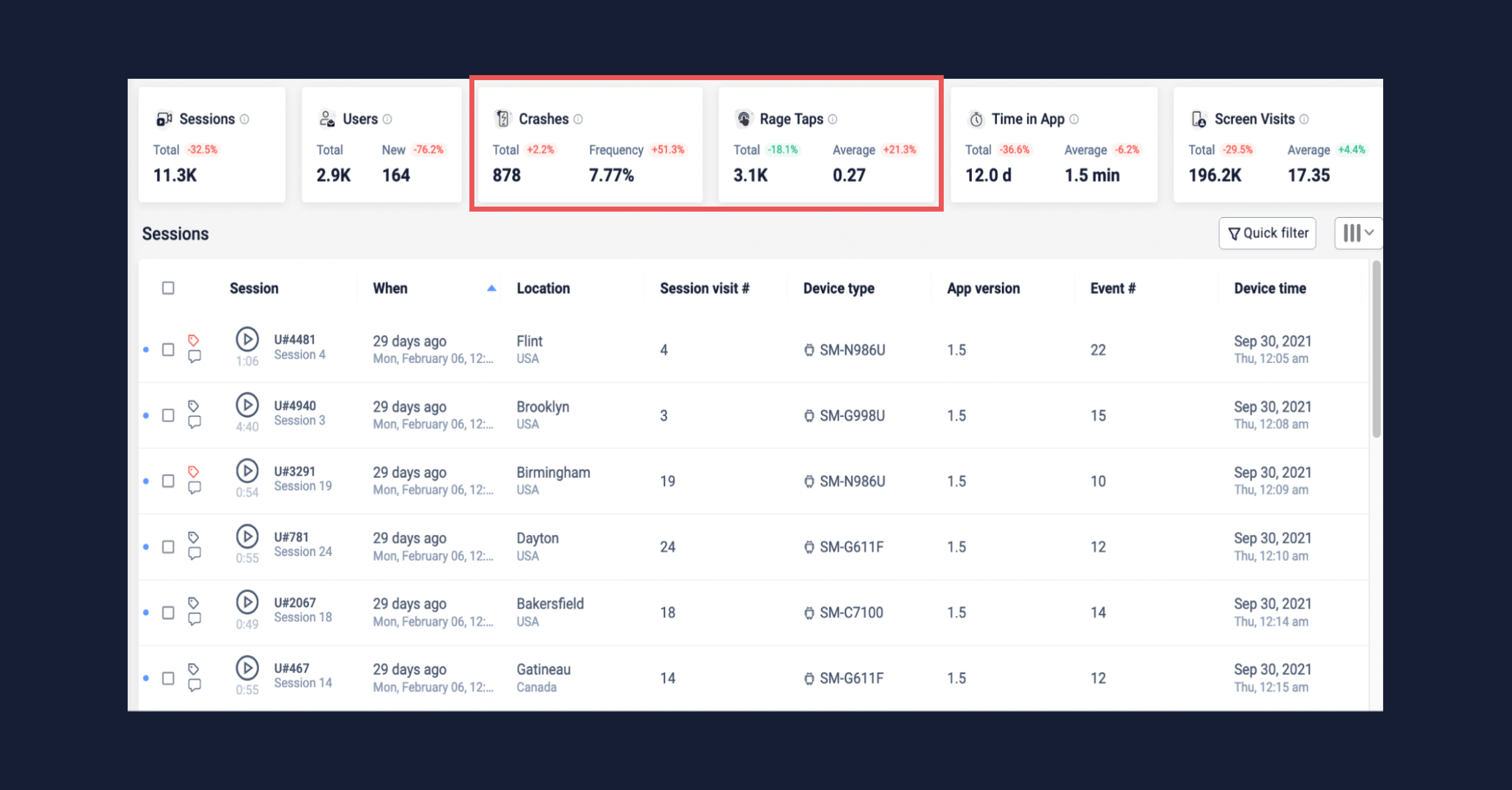 Heatmaps will show you which parts of the screen users made rage taps or unresponsive taps. This can already empower you with insights about what elements of a screen could be confusing for users.