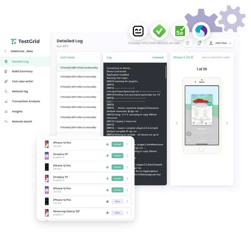 Real Device Cloud: Access to a wide range of real Android and iOS devices for testing.