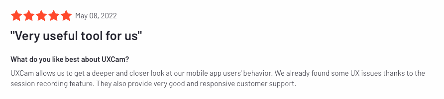 We want to give another big thank you to our customers for reviewing UXCam on G2. Our customer success team always works hard to ensure you have the best experience possible.