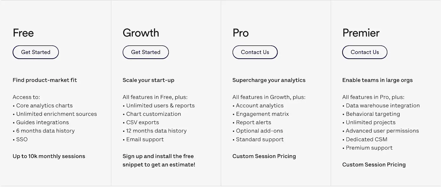 Heap’s pricing is fully bespoke, but they do offer distinct plans:
