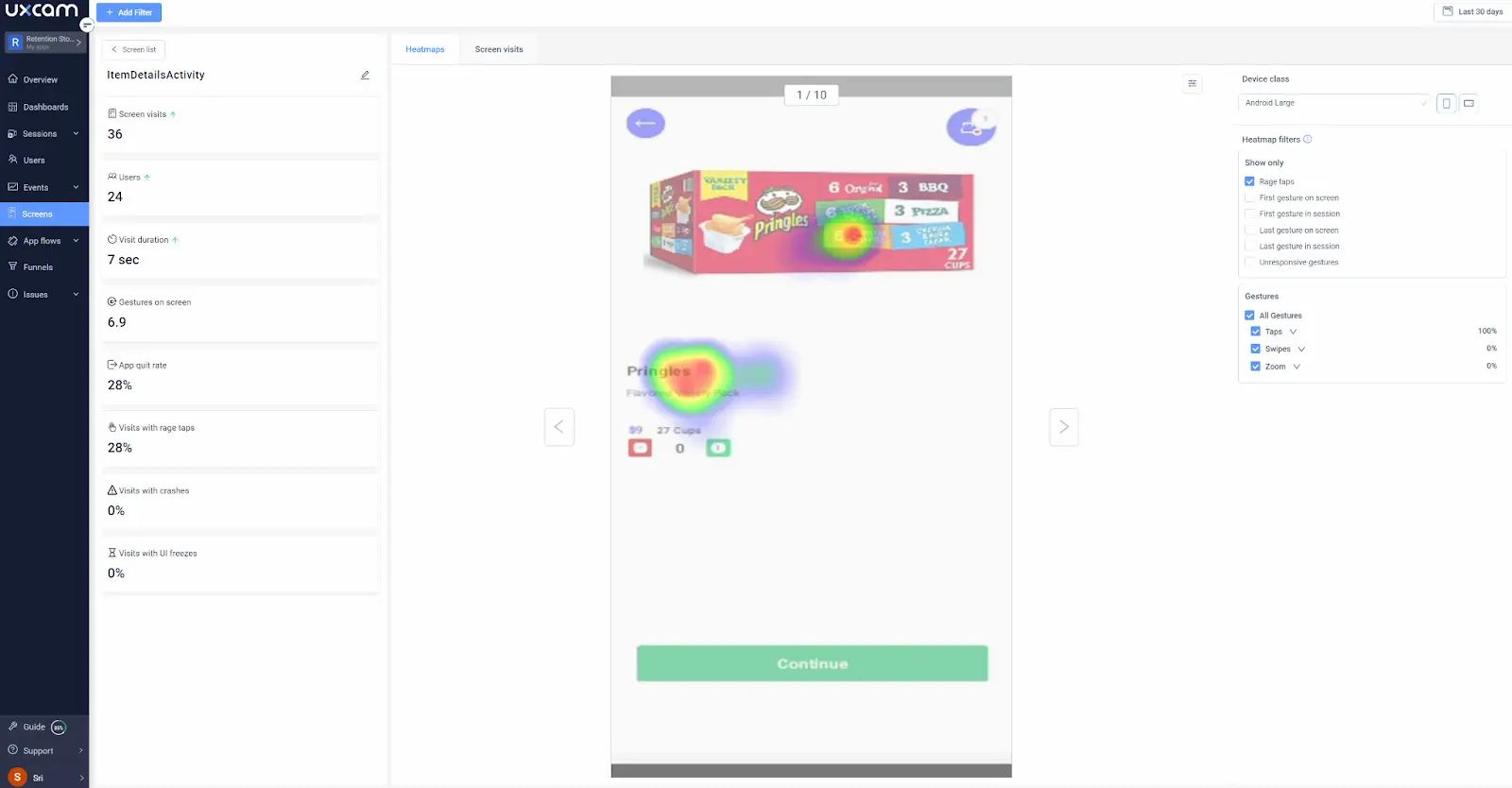 Clicking on any of these app screens will open up a heatmap you can analyze, filter, and segment (more on that later)—it’s that easy.