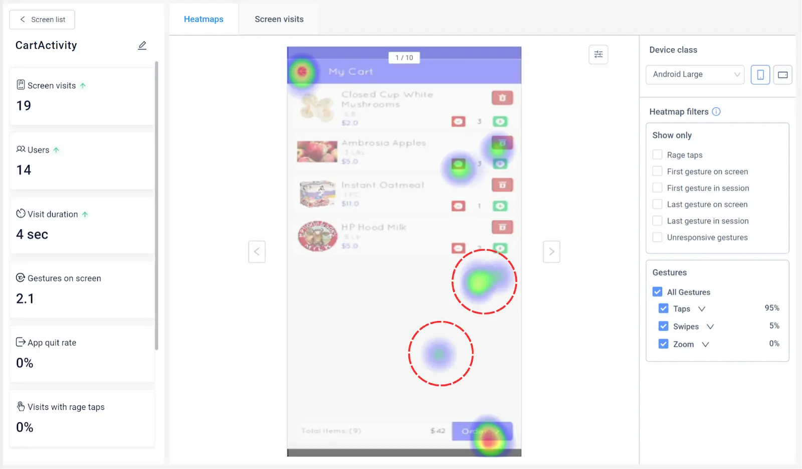 Heatmaps give you a visual representation of how users interact with your app. This information allows you to make tweaks and optimizations that can lead to improved user experience.