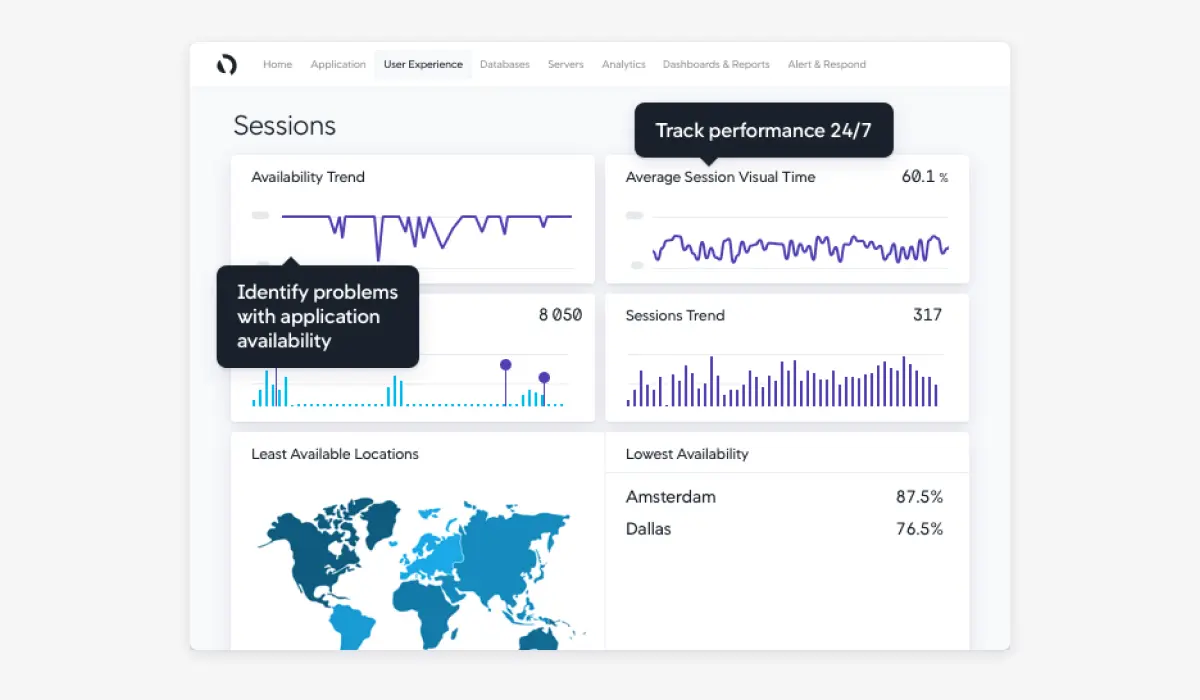 User Journey Dashboards: See the impact of performance issues on real users with end-user monitoring reports.