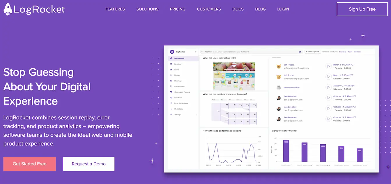 Logrocket is great for identifying user frustration issues, including rage clicks and dead clicks when the journey takes them down a dead end. This helps frontend teams identify issues quickly before they start affecting users and implement a fix.