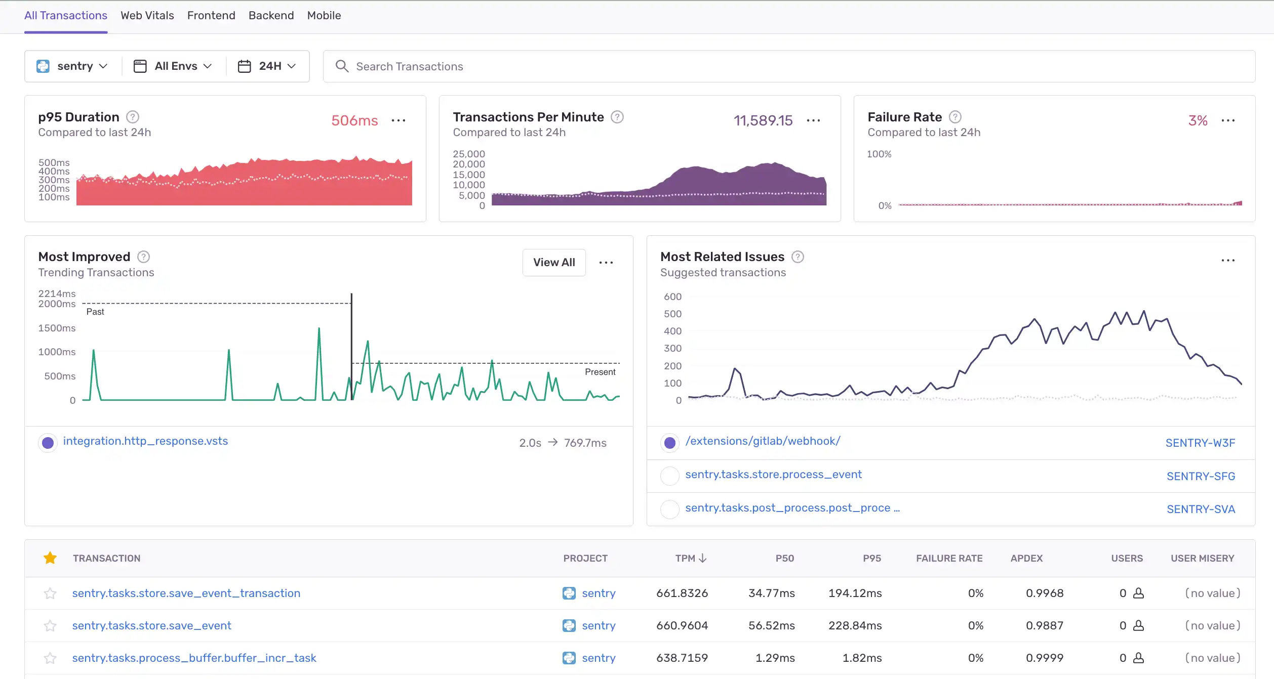 Sentry can identify issues in your code before they lead to downtime, allowing your backend development teams to resolve any errors before they affect users.