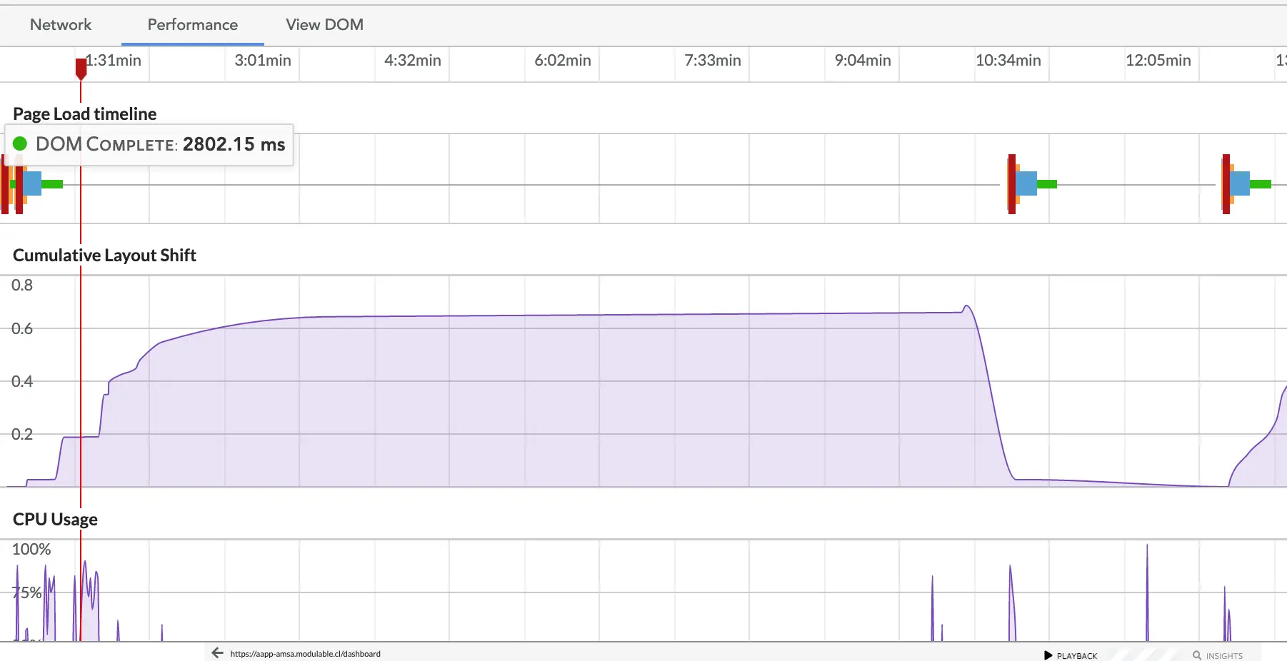 Session recordings show every user interaction in relation to network requests, DOM events, and console messages.