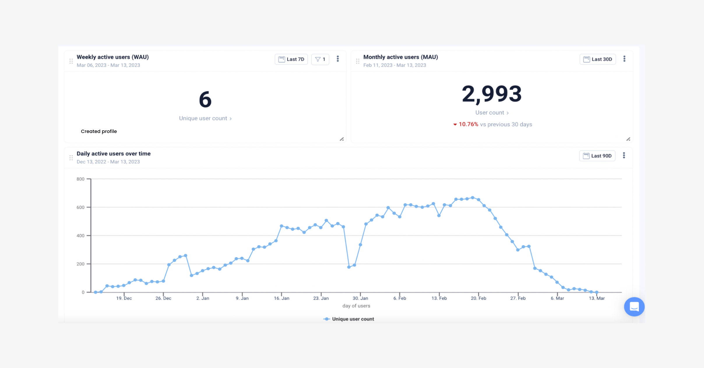 This measure provides a sign of how successful your onboarding process is in convincing users to continue using your product. To get a better picture of how onboarding effects retention and versus other factors, it’s best to use a shorter time period such as a week or month.
