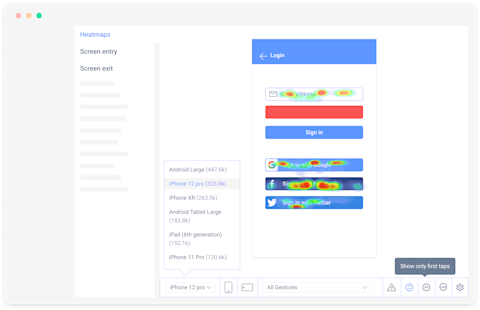 Use Heatmaps to understand user interaction with app UI elements.