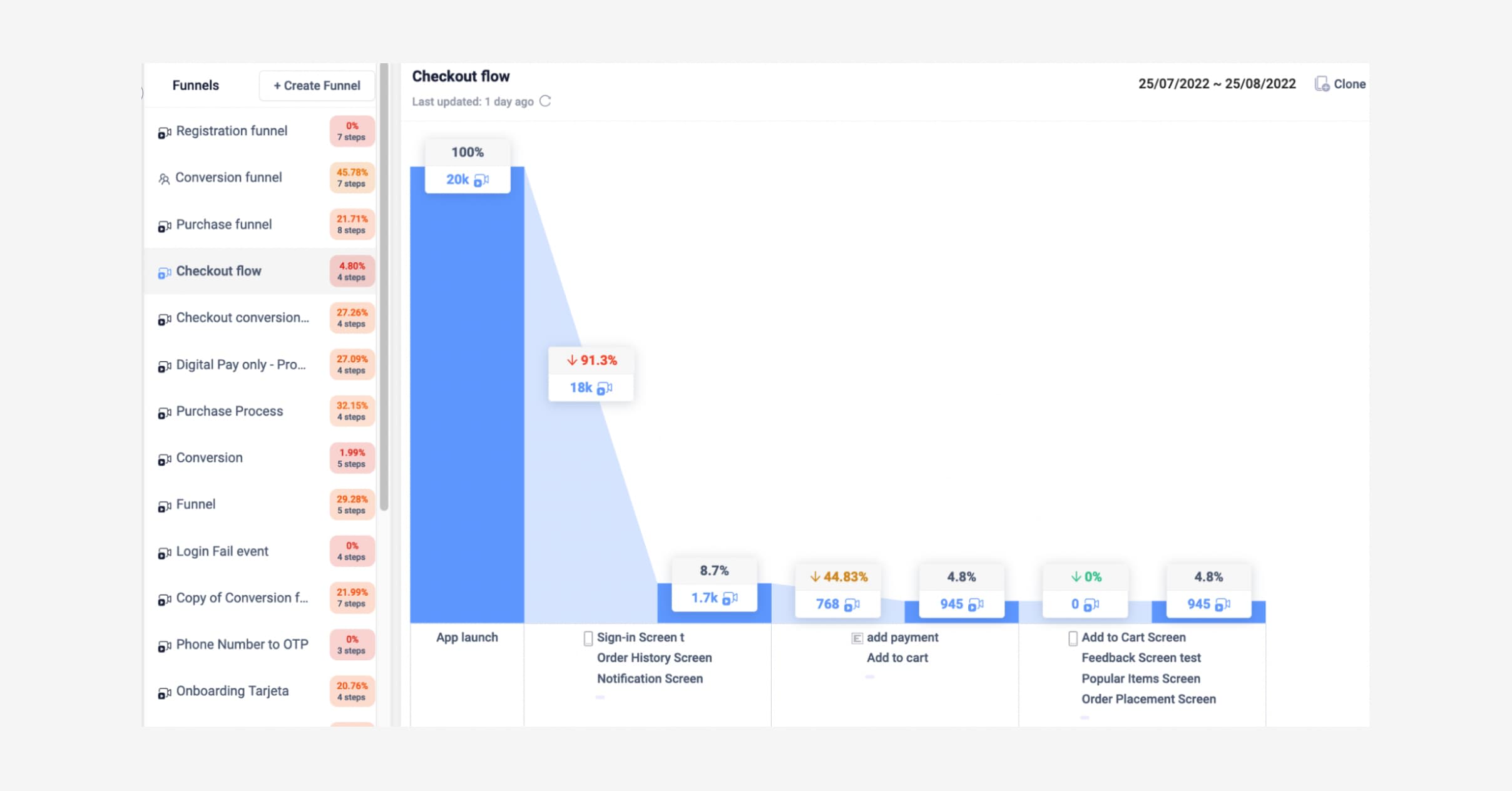 Create more granular funnels thanks to the combination of events and screens