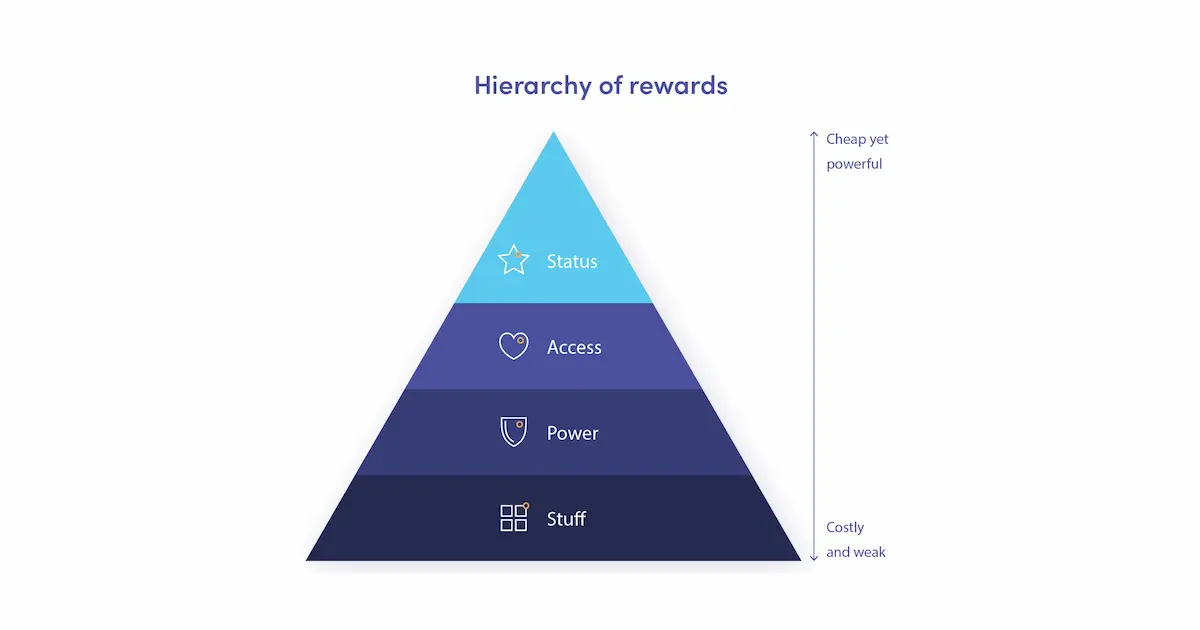 The Status, Access, Power, and Stuff (SAPS) chart demonstrates cheap and powerful rewards, like high user status indicators, can be effective. For example: