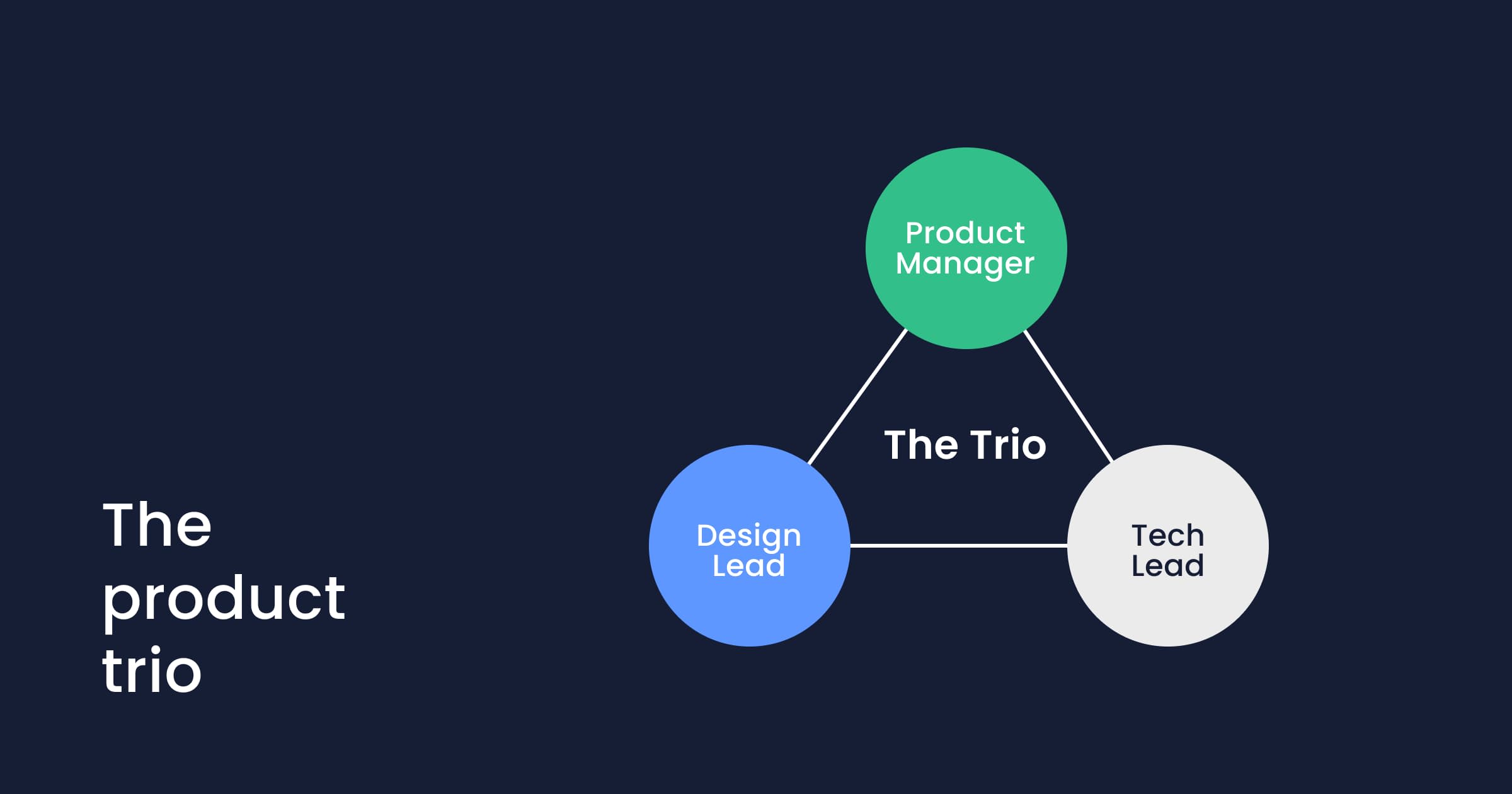A product trio is usually comprised of a product manager, a designer, and an engineer, with decisions usually being approved by the highest paid person in the organization. It’s mostly agreed that these are the minimum roles you’ll need to fill to be able to create a minimum viable product and effectively improve features.