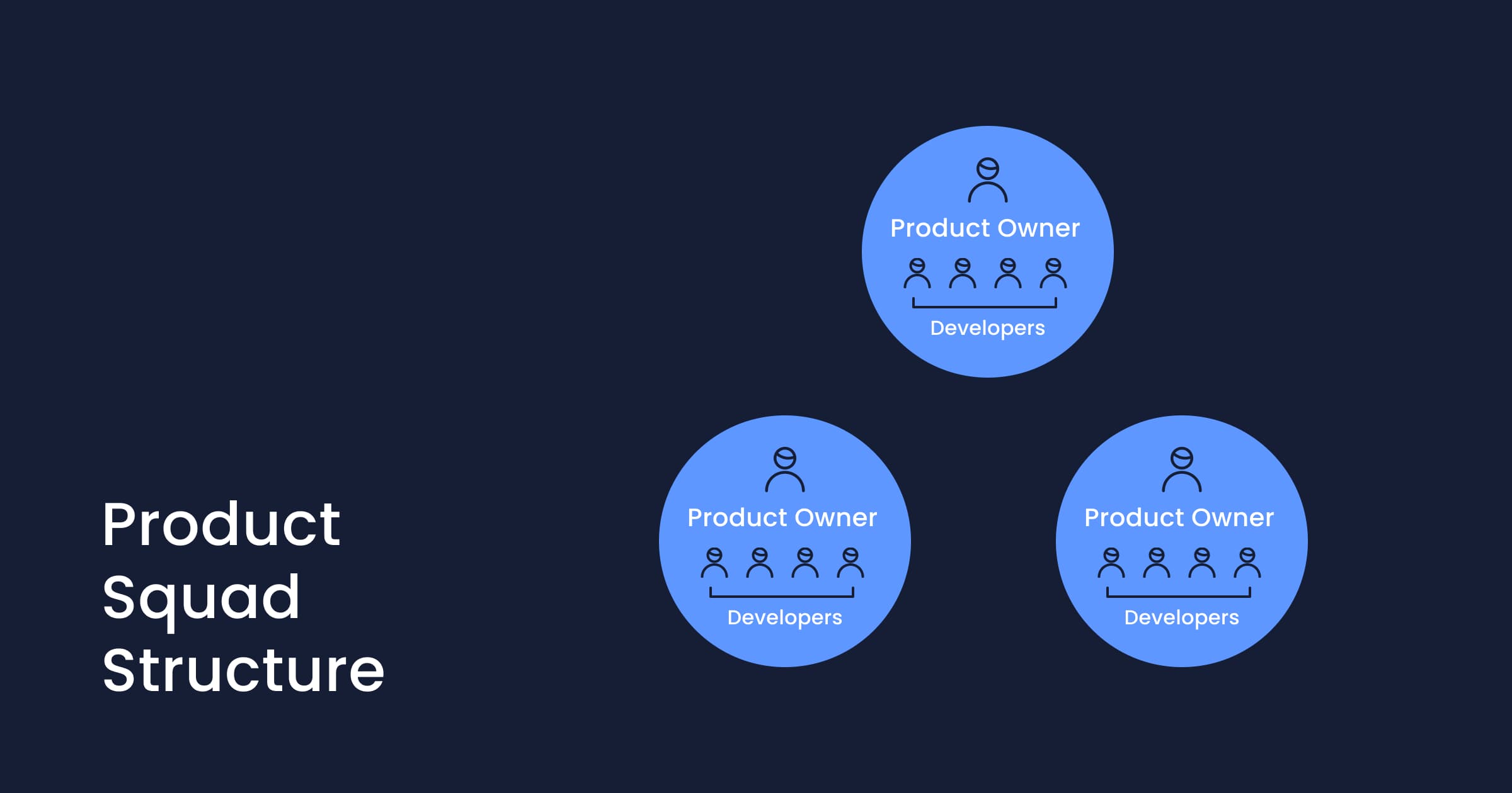 This type of structure is especially cross-functional and each team has a dedicated product manager overlooking a group of developers. Similar to the skills-based product manager structure, the squad structure also works on specific areas of the product, however, it’s not organized by expertise.
