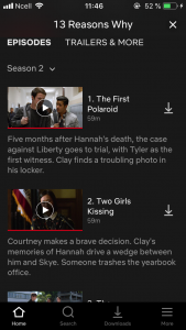 When you scroll down you’ll find an overview of all episodes per season. The Law of Proximity works the same as on the page before. Title, video, and description are close together and seems to belong together. Between two episodes there is a gap to show which description belongs to which title and video. The half cut video, and with this, the Law of Closure shows you that there must be more information or episodes when you scroll down.