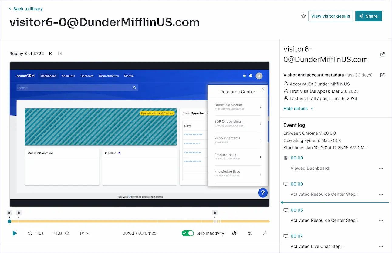 Fully integrated video playback solution: It fits right into the Pendo platform, making it easy to get more insights about how your app is used.