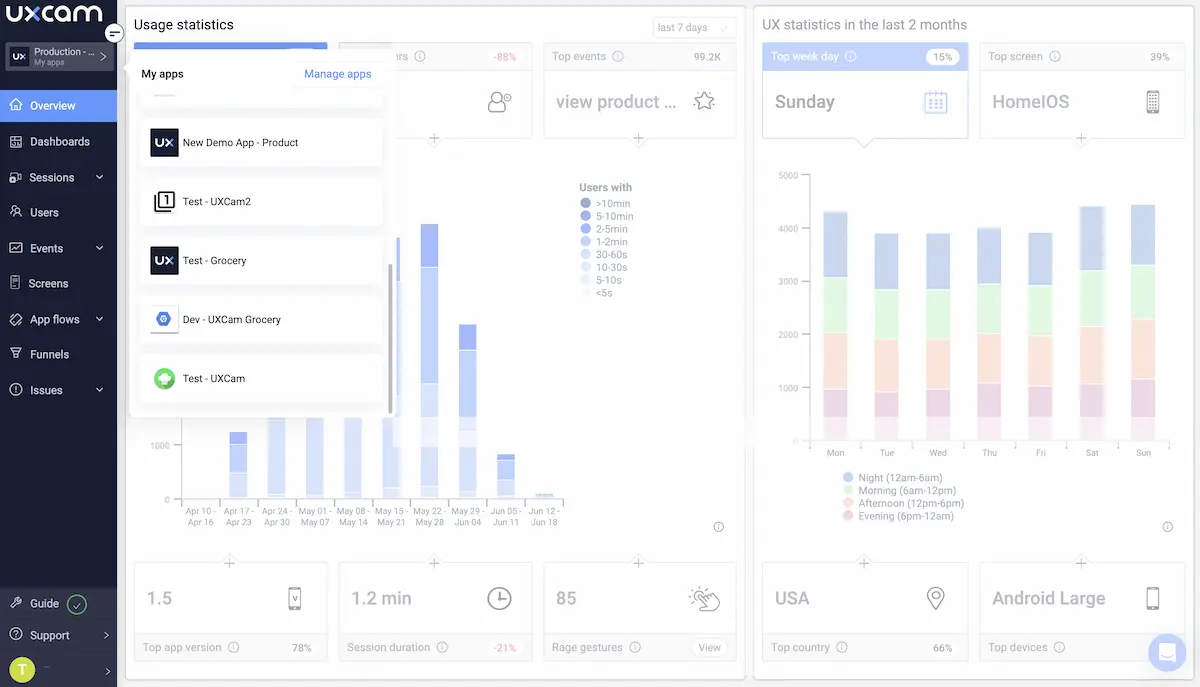 In this guide, we’ll be giving you an overview of when product analytics dashboards actually are before doing a deep dive into a ton of example cases using some of the customizable dashboards that you can build in UXCam. By the end, you’ll have a pretty good idea of how to start taking advantage of this useful tool.