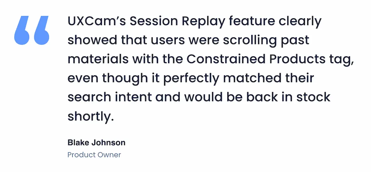 To address this, they introduced a “Constrained Products” tag to indicate low-stock items. However, user response was poor, with sales dropping by 80%. The team used UXCam's session replays and heatmaps to identify messaging that was less intrusive.