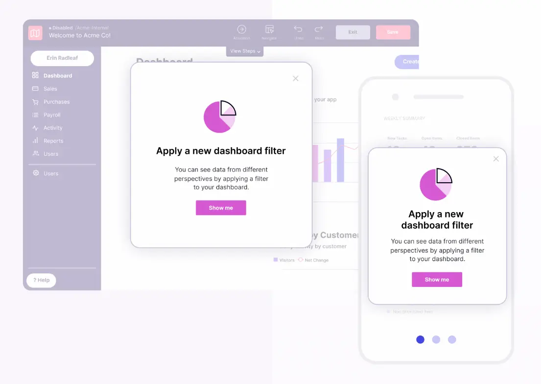 Features include road mapping, product usage analytics, onboarding, and guide creation. Pendo has a free plan that lets you try functionalities like product analytics and roadmaps for up to 500 monthly active users.