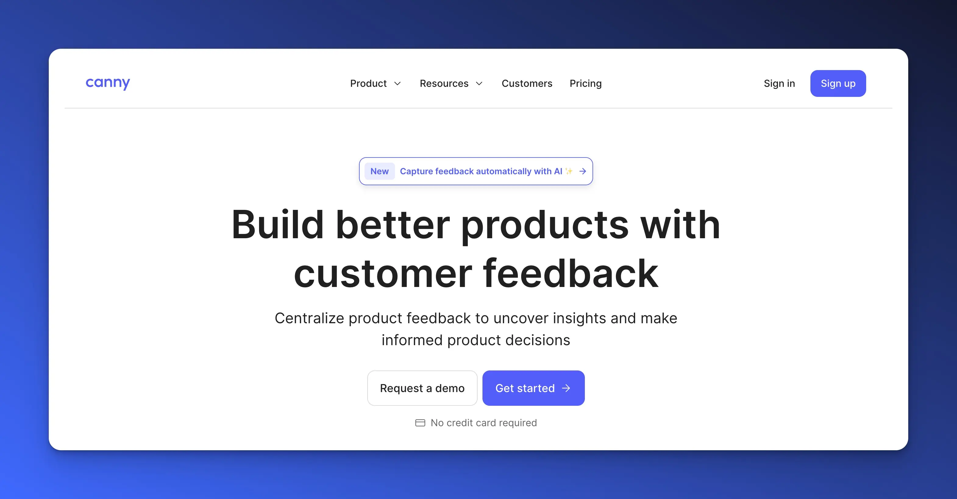 Canny helps you collect product feedback in a structured way—so it doesn’t get lost in Slack threads, emails, or scattered spreadsheets.