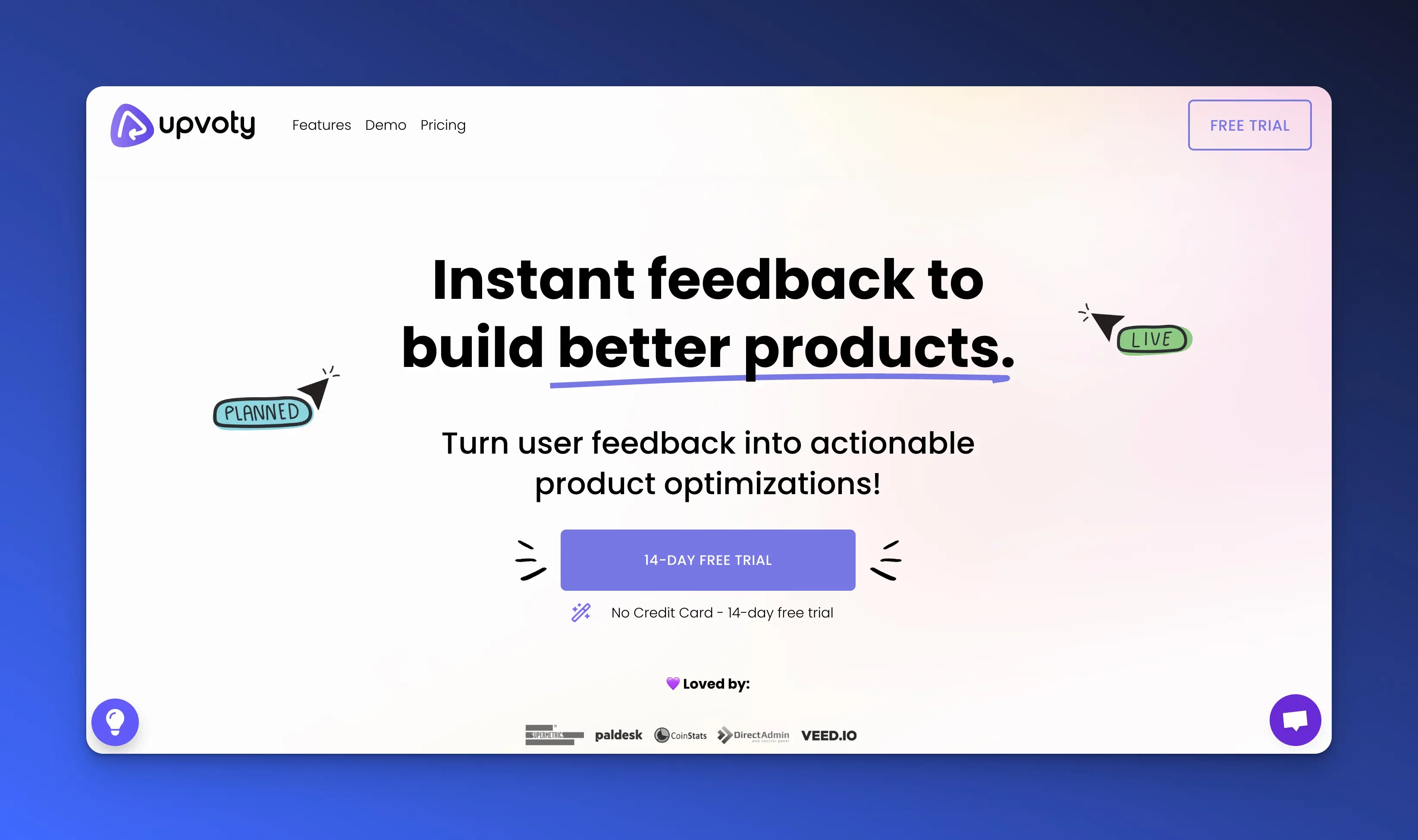 Upvoty is a lightweight and affordable feedback management tool designed for fast-moving product teams. It helps you collect suggestions from users, let them vote, and organize feedback by product or feature area.
