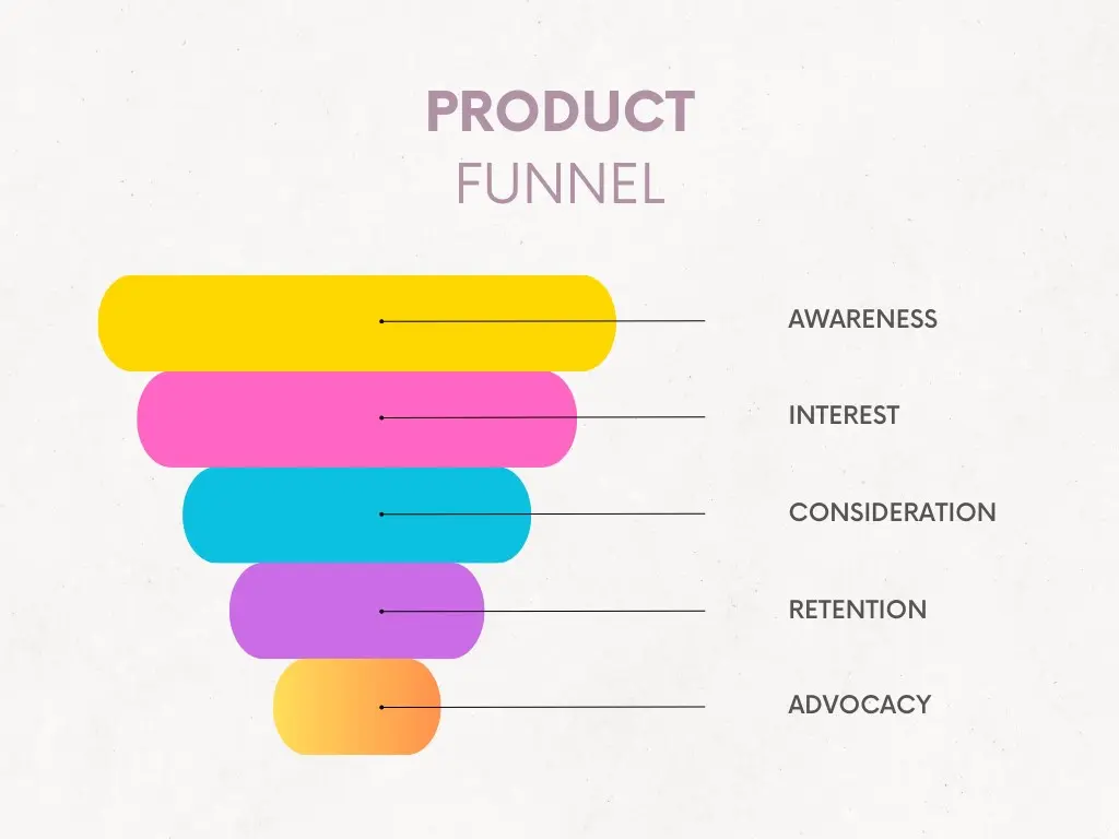 A product funnel is a tool used to determine how users interact with your product or solution at every stage of their journey. A product—whether physical or digital—can have its version of a funnel, filled with content that falls under these stages: