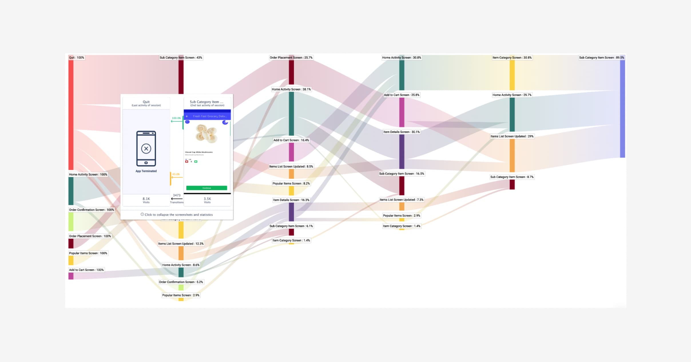 User behavior analytics: By tracking various user events like screen views, clicks, crash counts, rage taps, quit rate, purchases, and more, product teams gain valuable insights into how users interact with the product. This data-driven approach enables a comprehensive understanding of user behaviors, highlighting areas where users may encounter difficulties or obstacles.