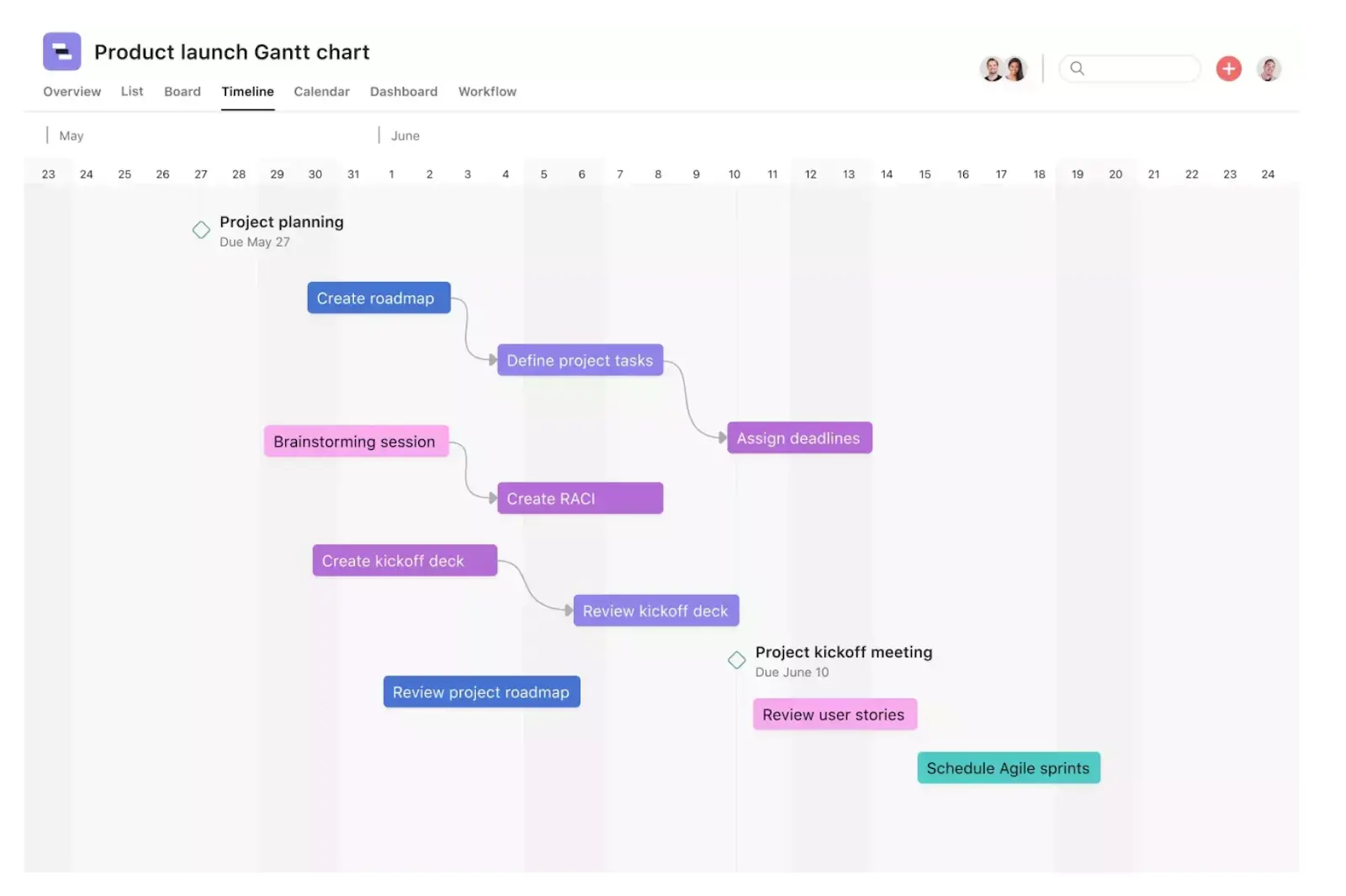 Asana provides an excellent product launch template that allows stakeholders to get involved with organizing a launch plan for everyone’s agreement. The template can be set in different views, including Boards, or in Gantt style to keep track of all deadlines and dependencies.