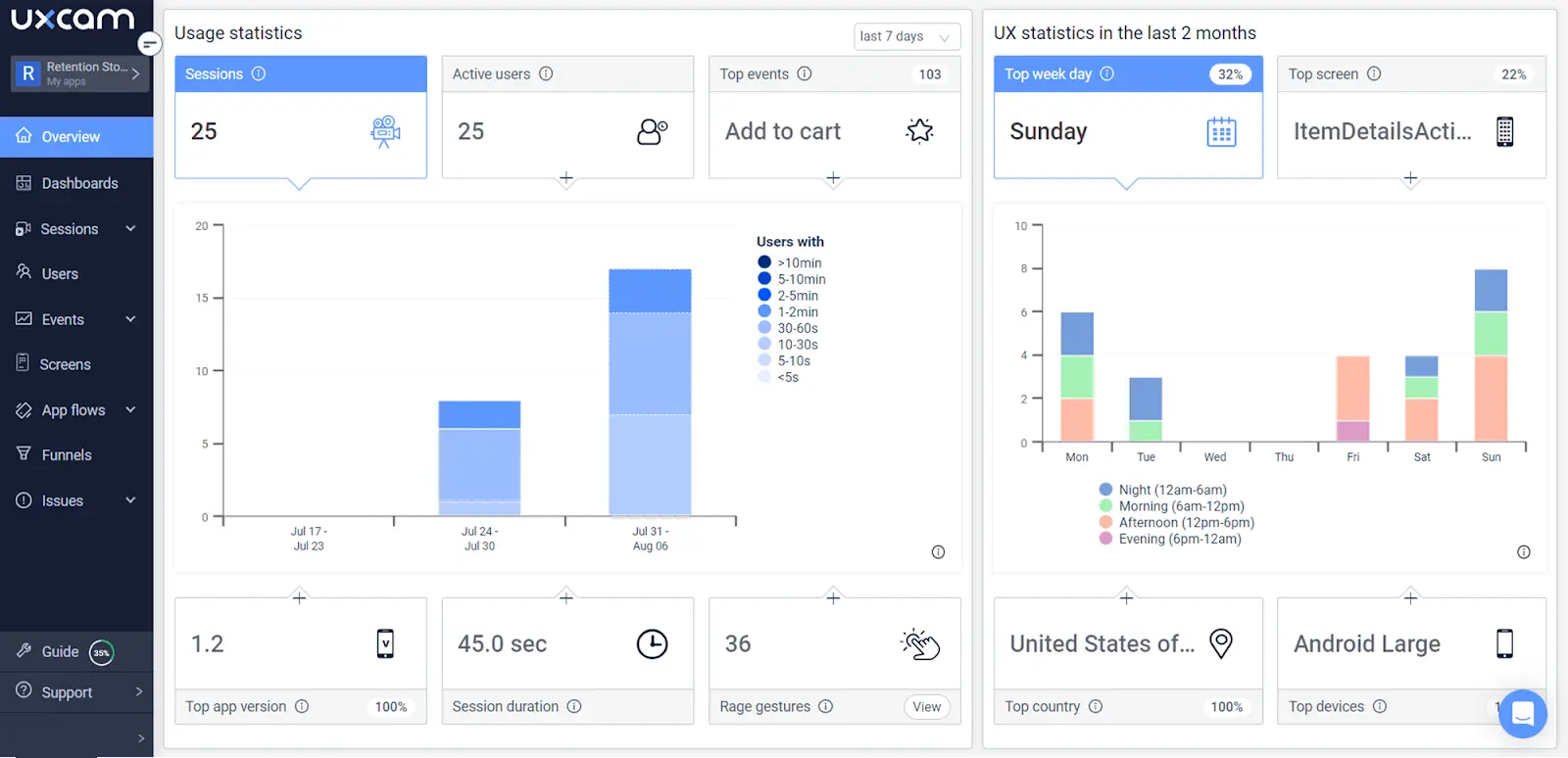 Here’s an example of a dashboard built with UXCam.