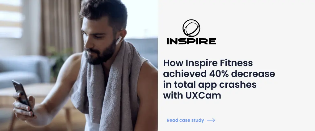 Learn how Inspire Fitness reduced total app crashes by 40% and rage taps by 56% within 3 months with UXCam - read the case study.