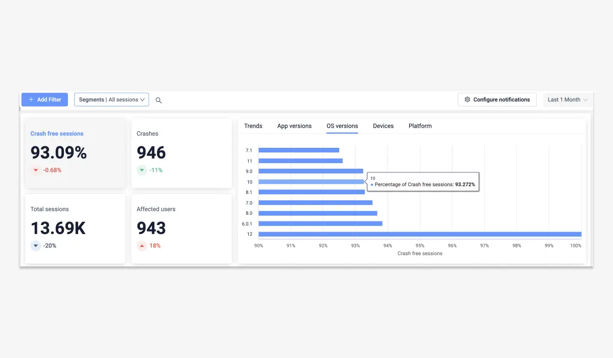 Sometimes, app crashes are specific to certain devices or operating system (OS) versions. By analyzing the data from crash reports, you can discover commonalities among the devices or mobile OS versions that are experiencing the crashes.