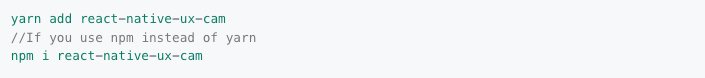 First, add UXCam to your project using either yarn or npm. For example: