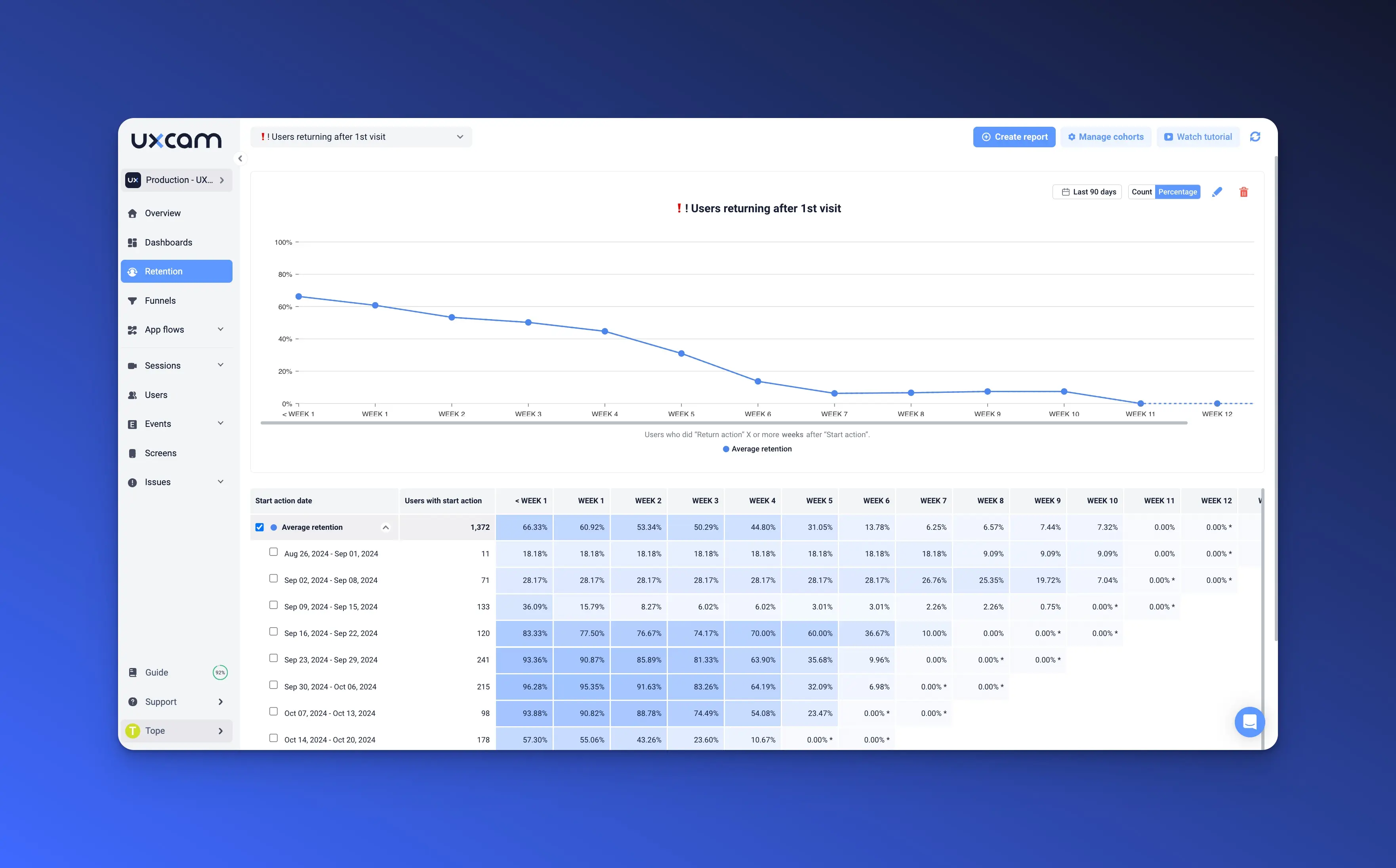 Try this with UXCam: Use UXCam’s trend dashboards and cohort analysis to measure improvements in onboarding performance over time.