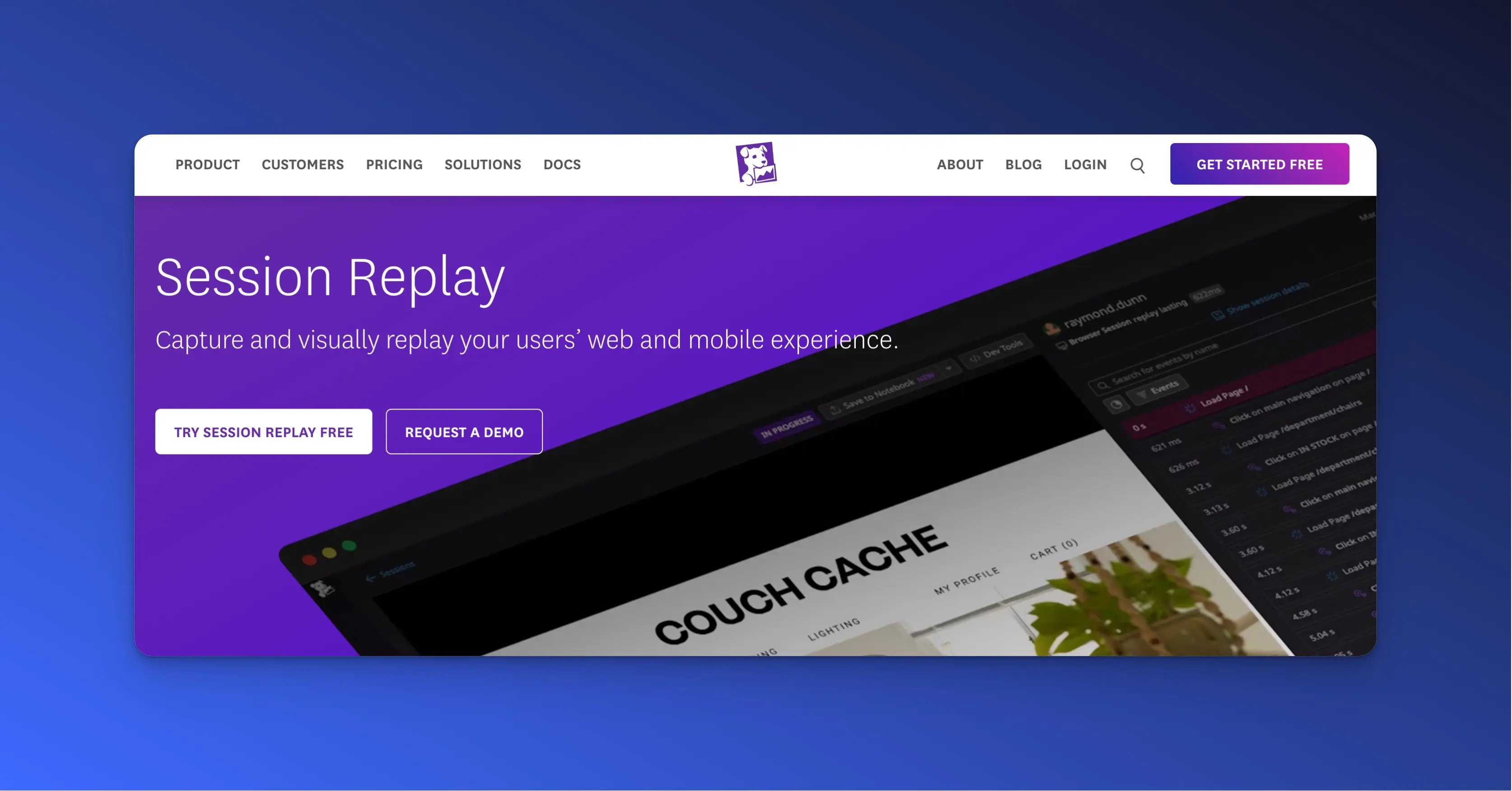 Primarily a monitoring tool; session replay is one aspect