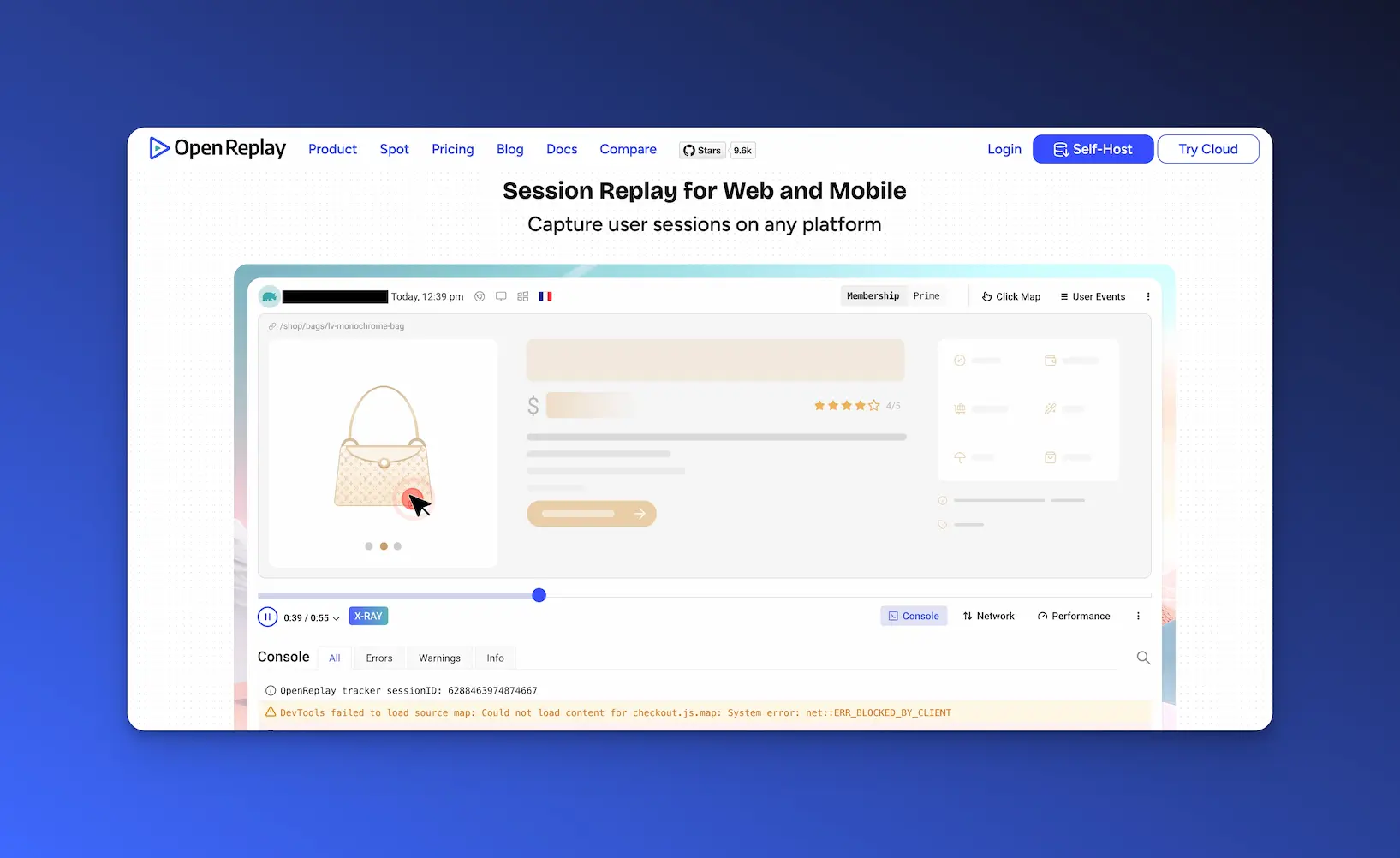 Self-hosted session replay capabilities