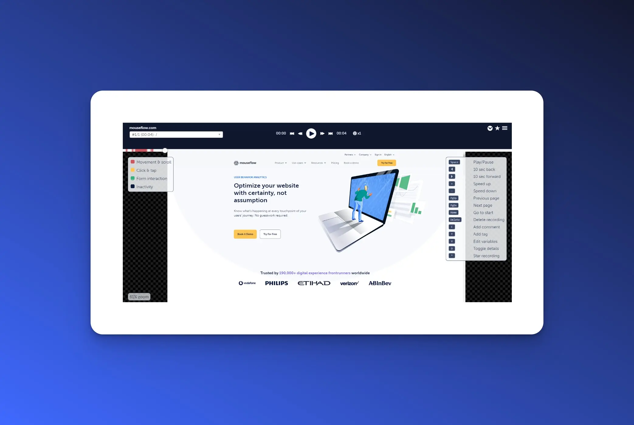 By seeing exactly how users engage with your product, you can identify pain points, improve user experience, and boost conversion rates.