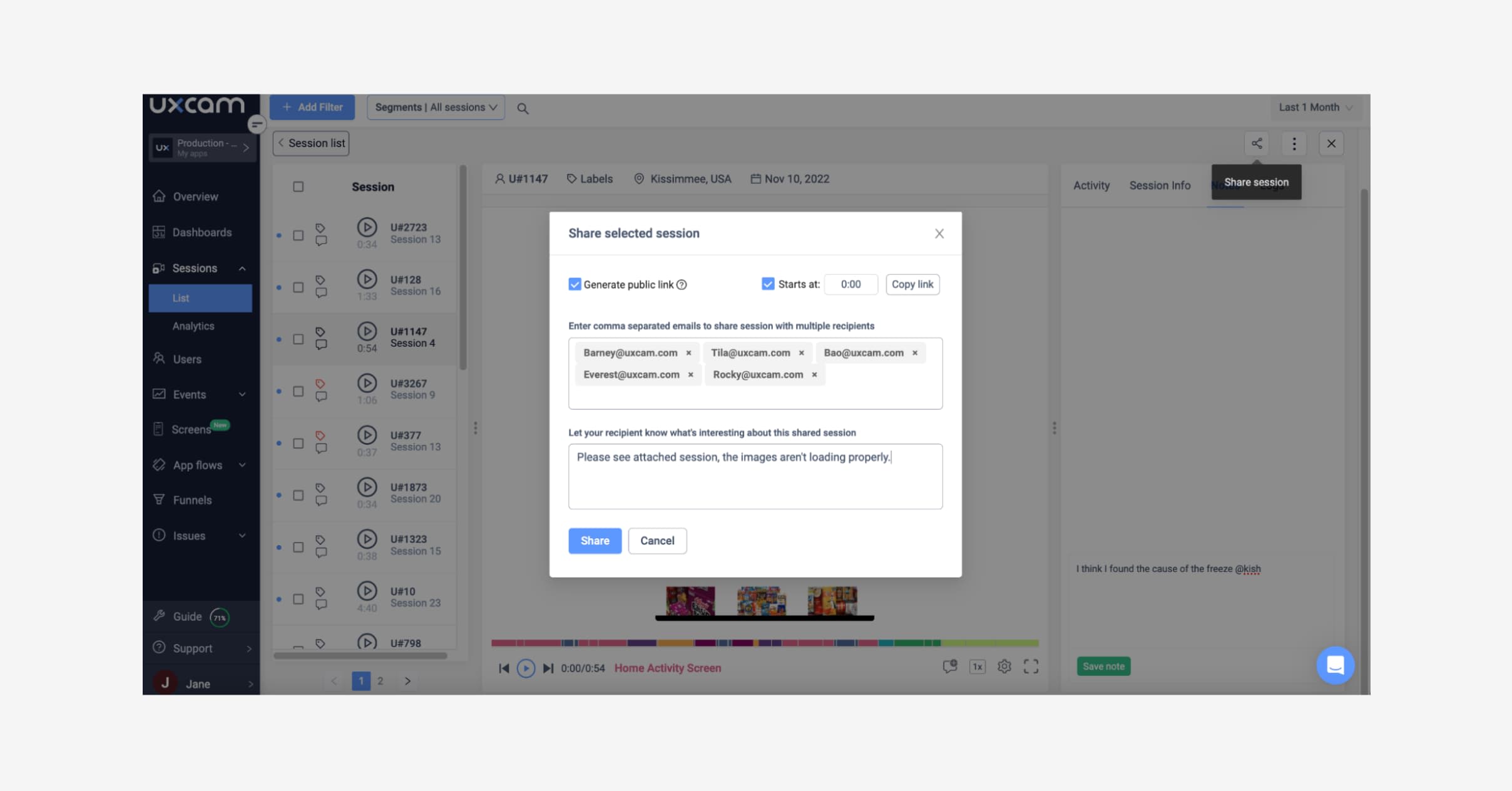 You can leave notes and tag your colleagues to collaborate in the session analysis.