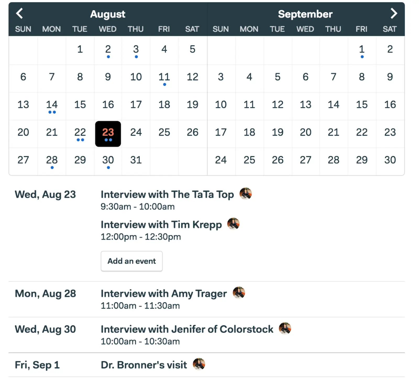 Basecamp uses the example of its calendar feature. The shaping team’s original solution for a calendar they could build in a 6-week cycle looked like this: