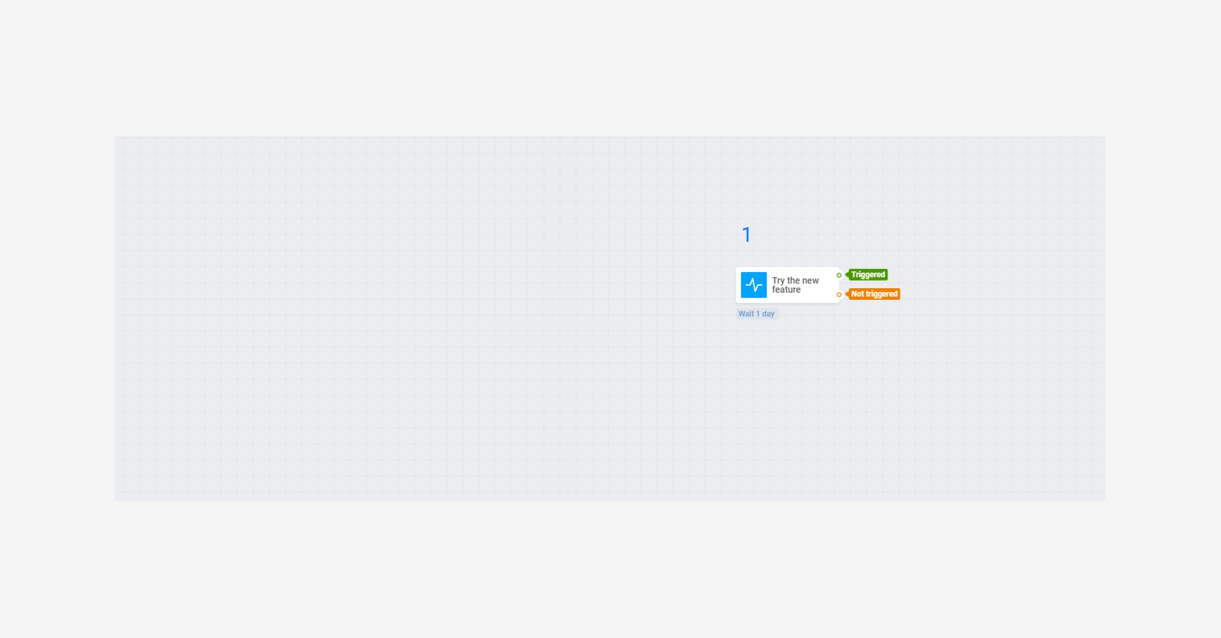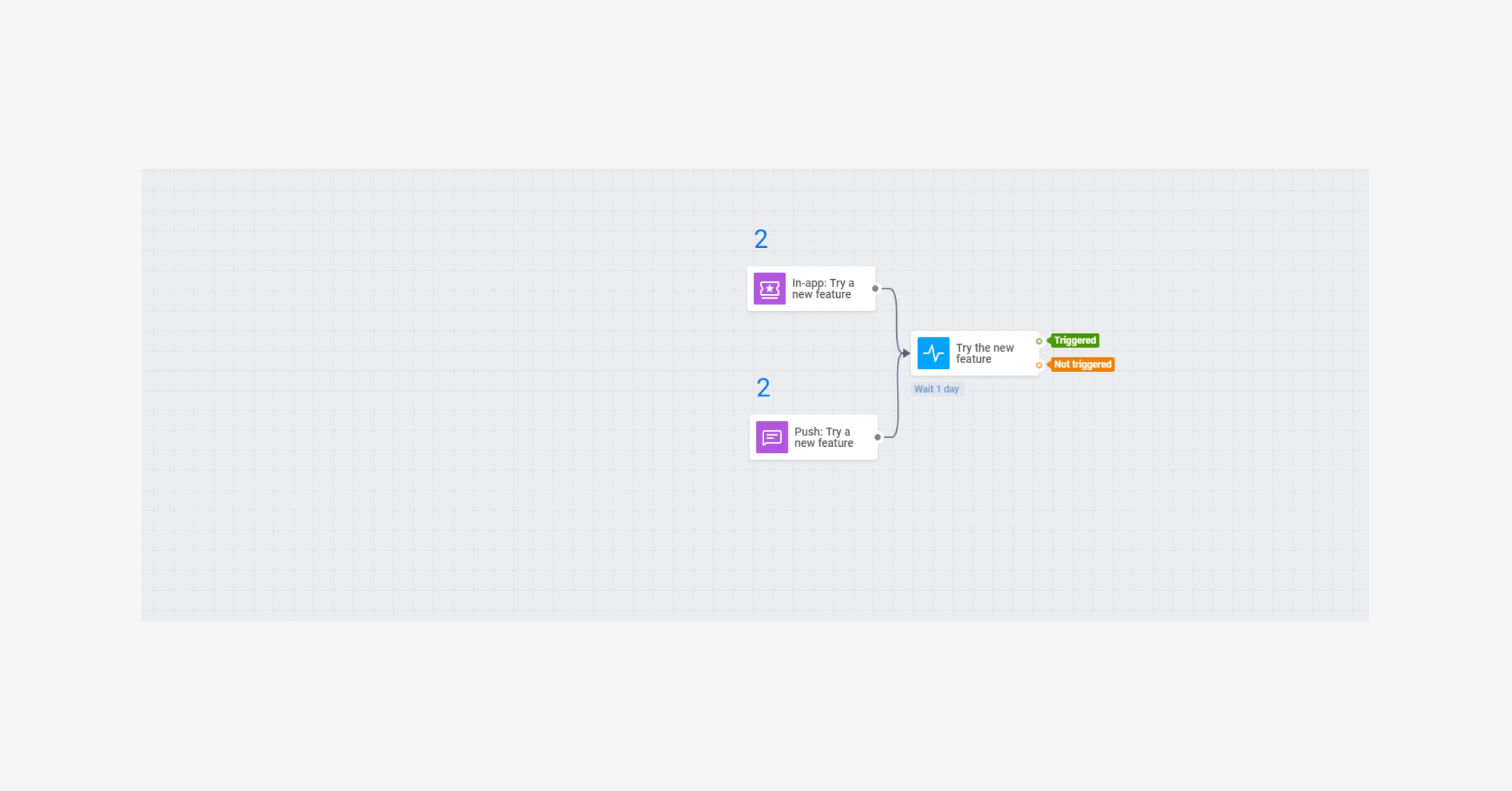 In our example, this will be a new feature announcement. It can take the form of an in-app message or a push notification — we will be able to decide on the channel after taking the next step.