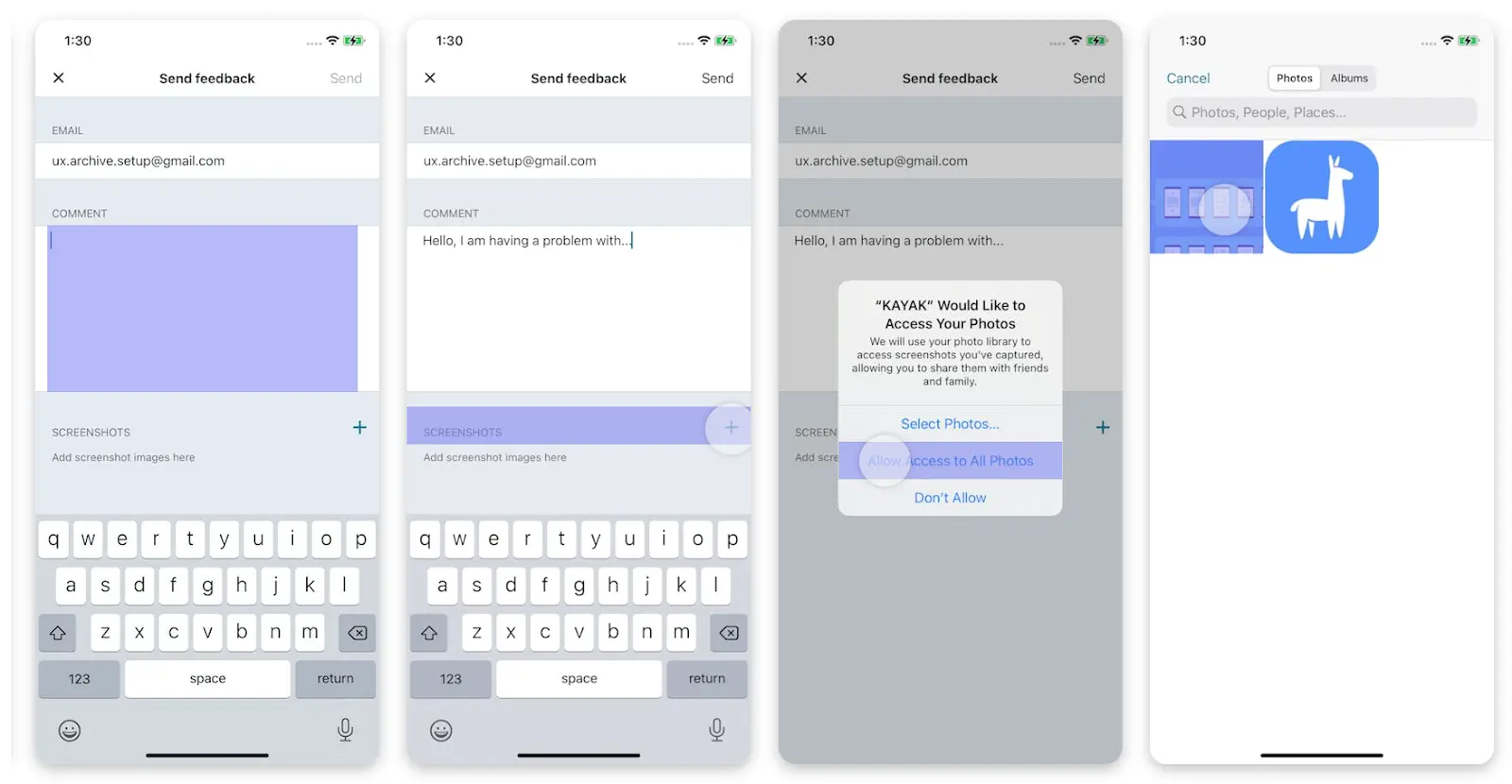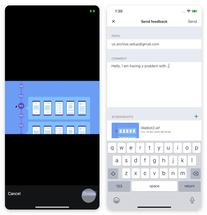 End state: The users will get to the send feedback screen with the option to "Send.”